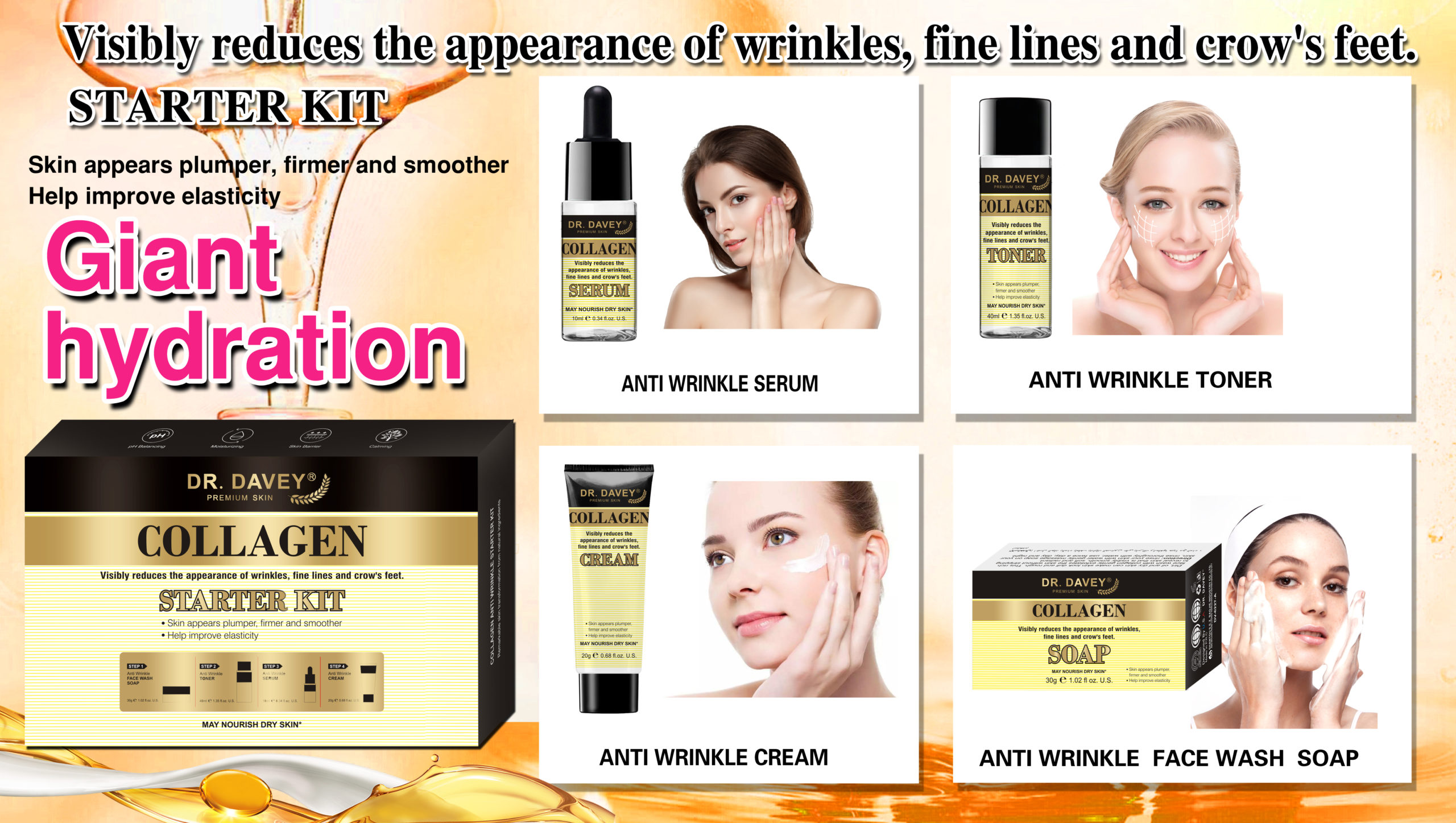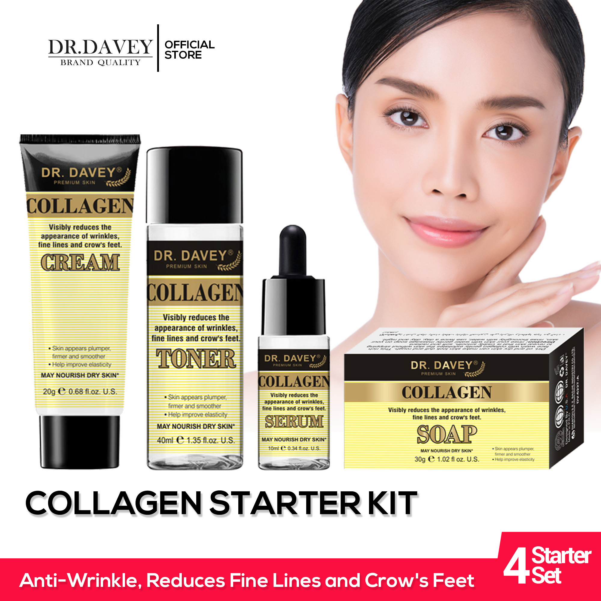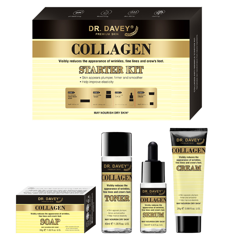 - Dr. Davey Collagen Starter Kit is a complete set of high-quality anti-aging and moisturizing products with 100% Pure Collagen Protein. A complete set that ensures to make your skin radiantly young, moisture, and elastic!