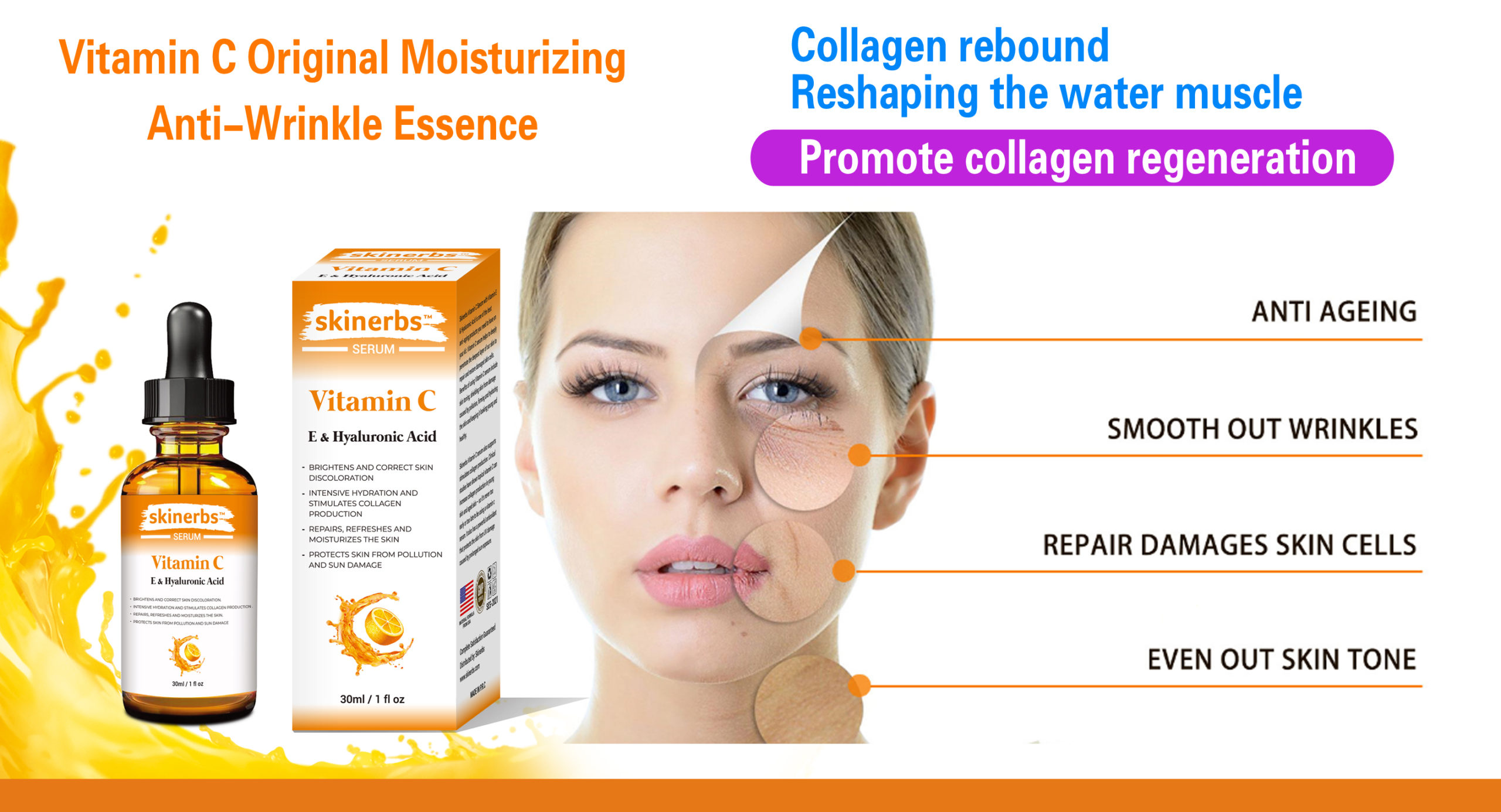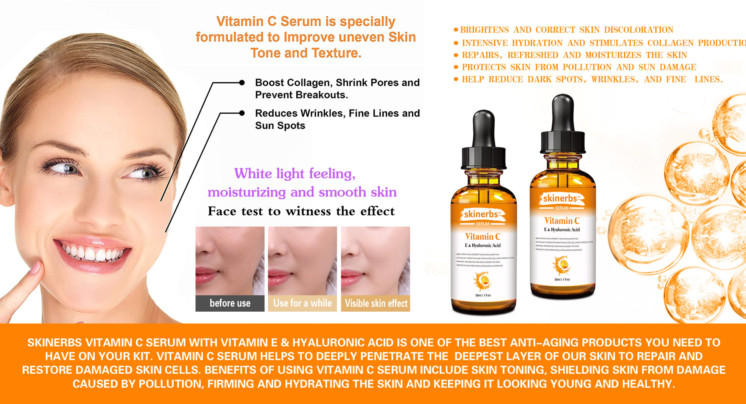 - BEST SKINCARE TO HAVE- Skinerbs Vitamin C Serum with Vitamin E & Hyaluronic Acid is one of the best anti-aging products you need to have on your kit.